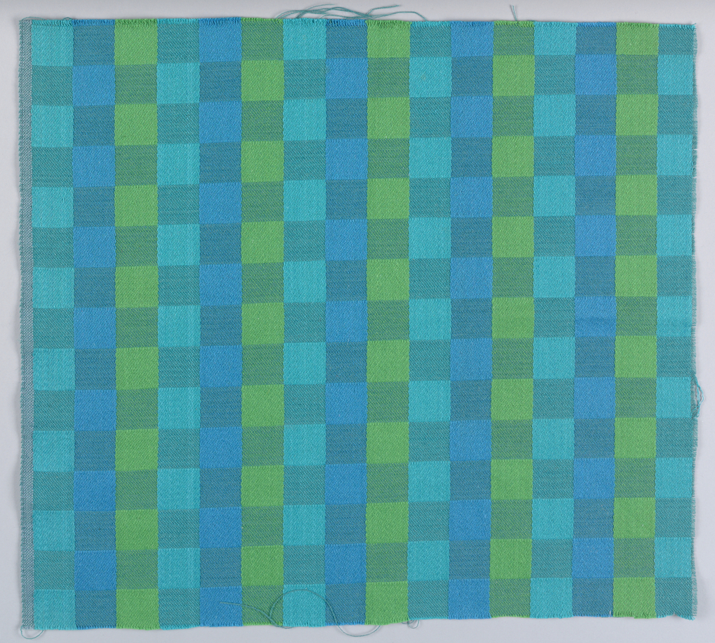 Spectra Magna is a woven pattern of small squares in related tones of the same color, combining three colors with two different surfaces to give the illusion of six colors. In its woven fabrics, Knoll tended to favor texture over pattern; Haraszty may have been influenced by the success of Alexander Girard’s woven designs for Herman Miller when creating this rare woven pattern for Knoll.
