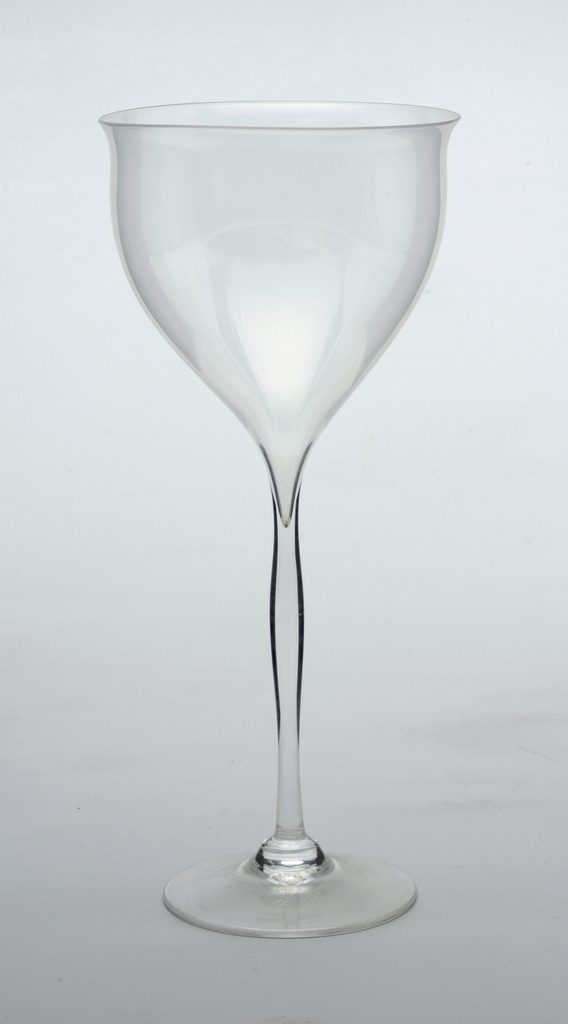 This is a glass. We acquired it in 1985. Its medium is glass. It is a part of the Product Design and Decorative Arts department.