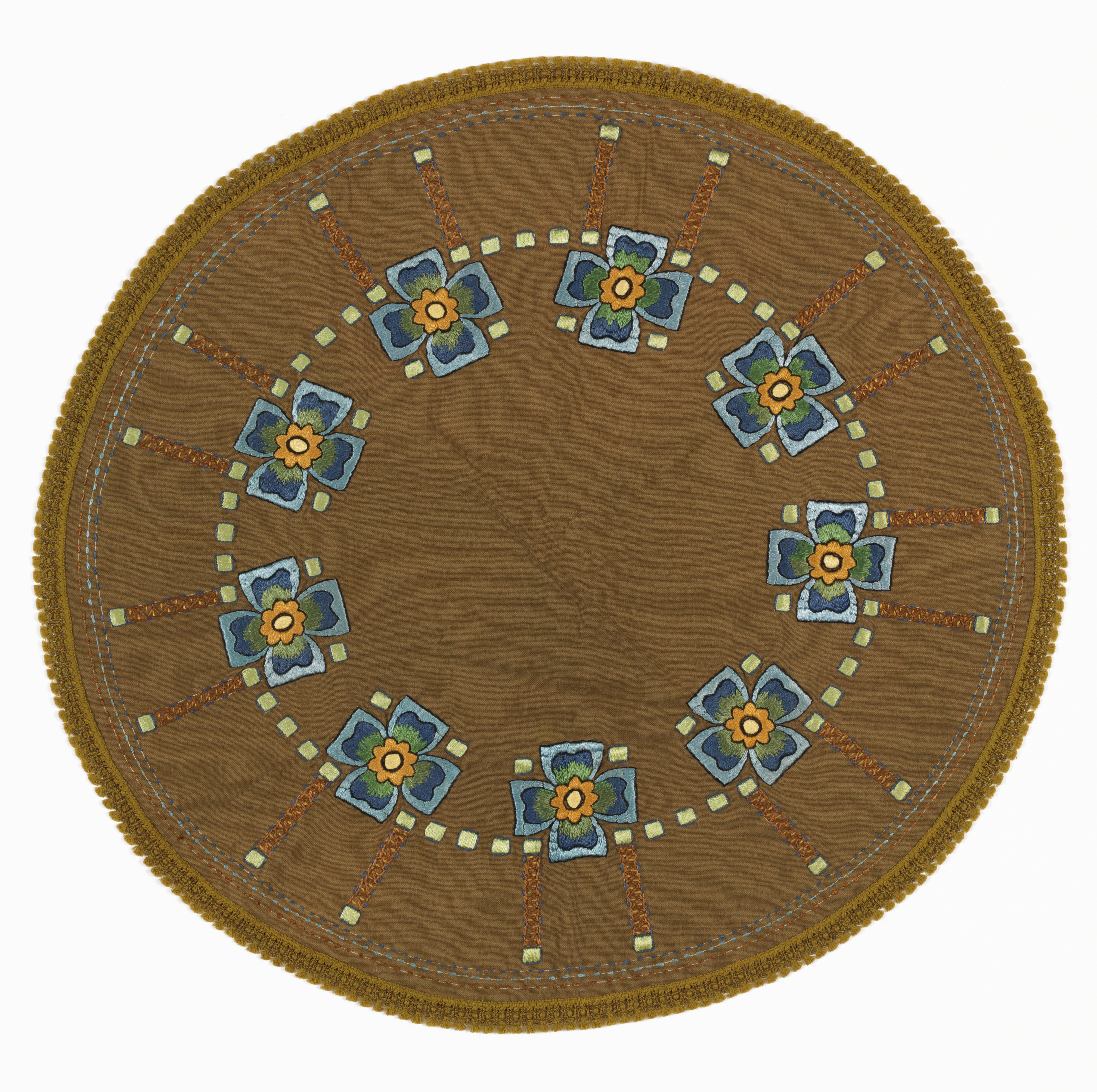 This is a Tablecloth. It was made by Unknown. It is dated ca. 1907 and we acquired it in 2019. Its medium is cotton, cotton and viscose rayon embroidery. It is a part of the Textiles department.