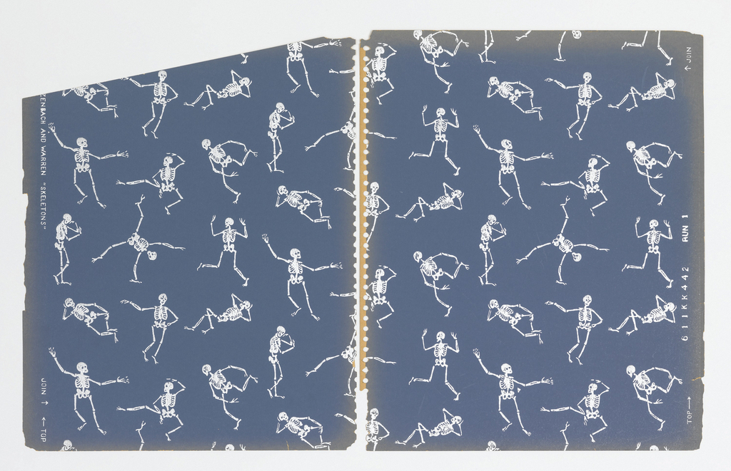 This is a Sidewall - sample. It was designed by William Justema and made by Katzenbach and Warren, Inc.. It is dated 1948 and we acquired it in 1949. Its medium is screen printed on paper. It is a part of the Wallcoverings department.